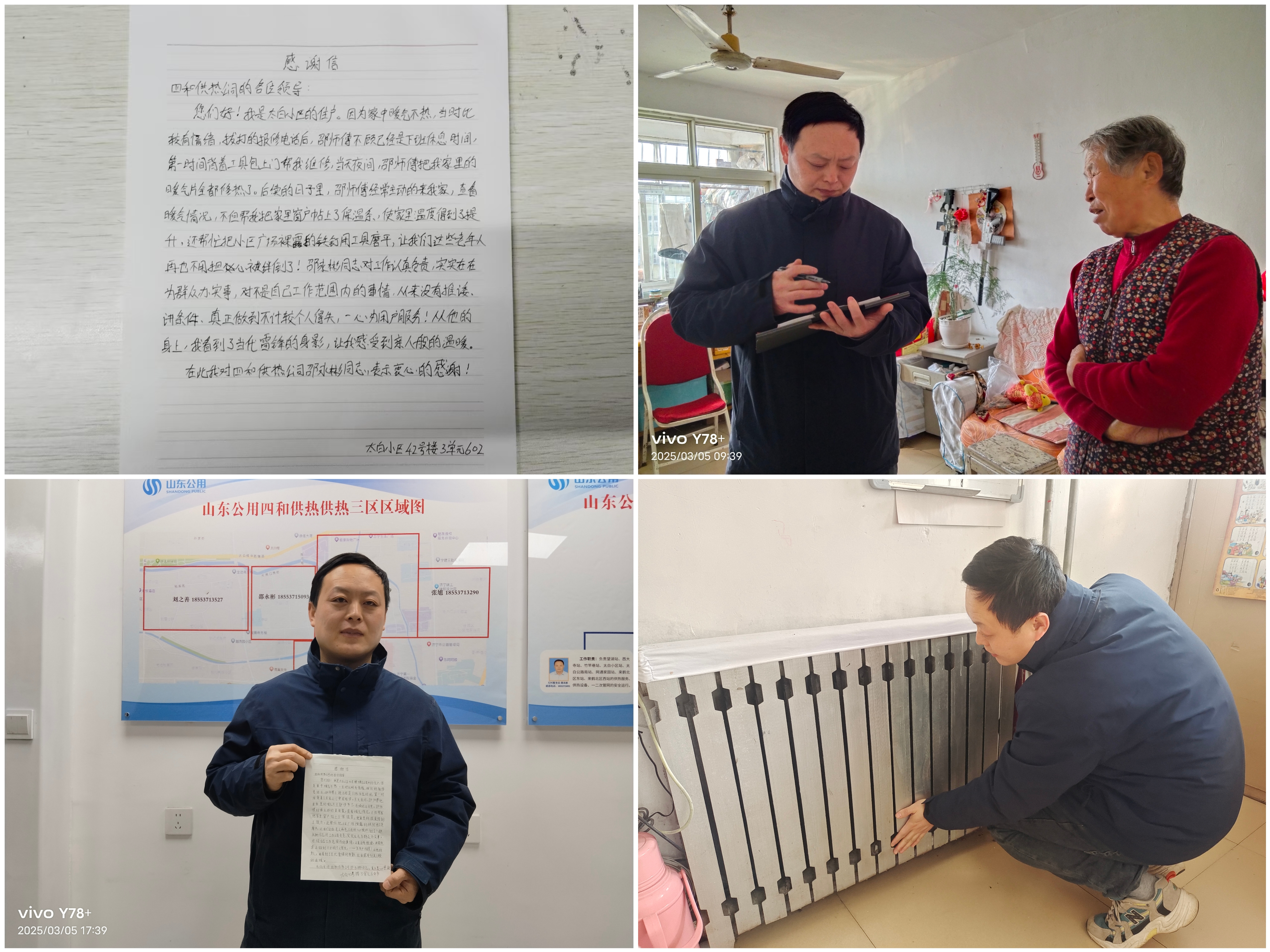 近日,濟(jì)寧四和供熱有限公司第三供熱區(qū)域收到一封來自太白小區(qū)年過七旬的熱用戶送來的感謝信。熱用戶用飽含深情的文字由衷感謝供熱網(wǎng)格員邵永彬同志,他以積極主動的服務(wù)態(tài)度和嫻熟精進(jìn)的專業(yè)技能,多次為用戶排憂解難。以高度責(zé)任心、實(shí)實(shí)在在為群眾辦實(shí)事,贏得了用戶的肯定和稱贊。